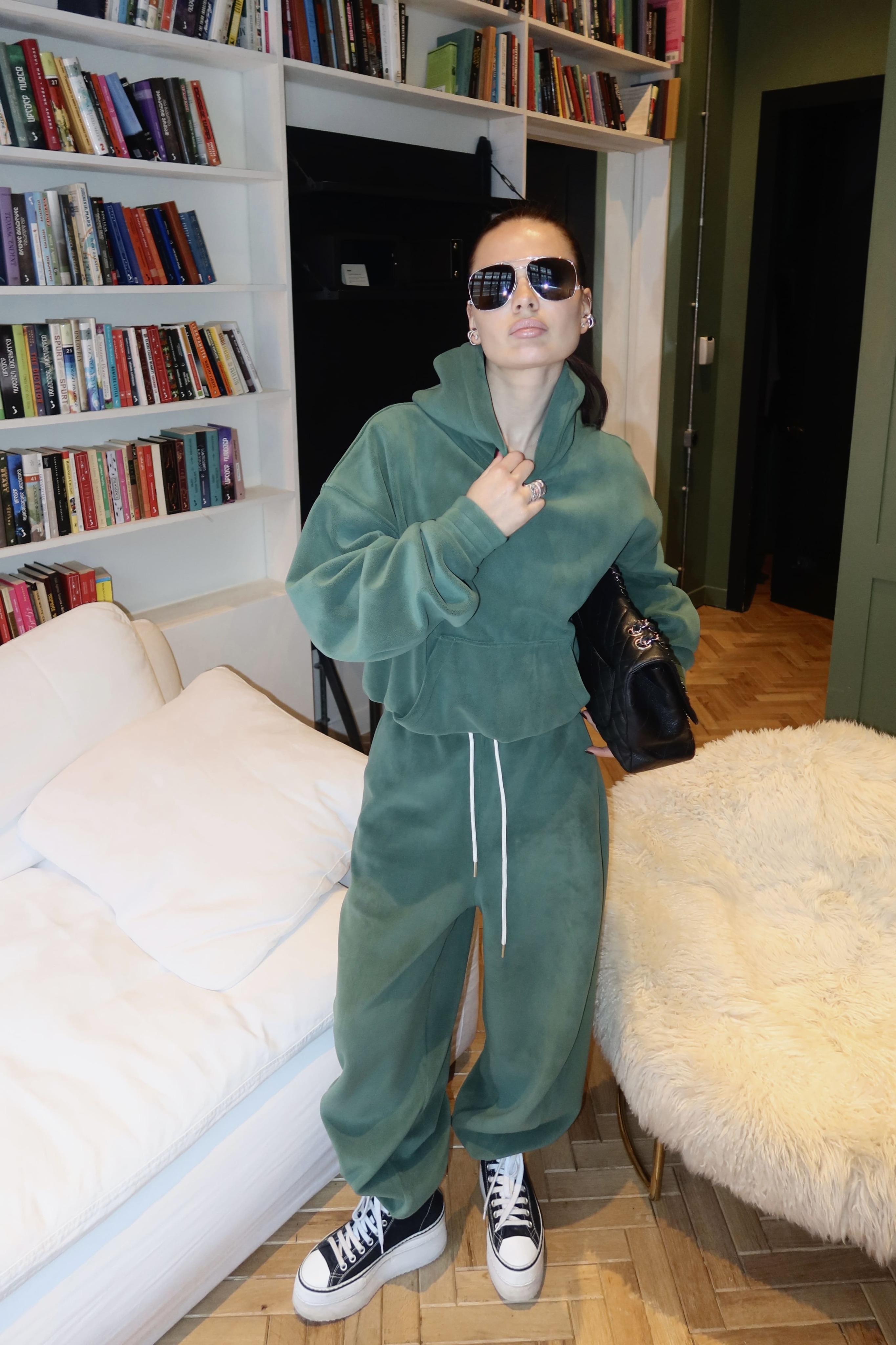 Носите как самостоятельный элемент образа или соберите комплект с джоггерами из флиса malachite green.