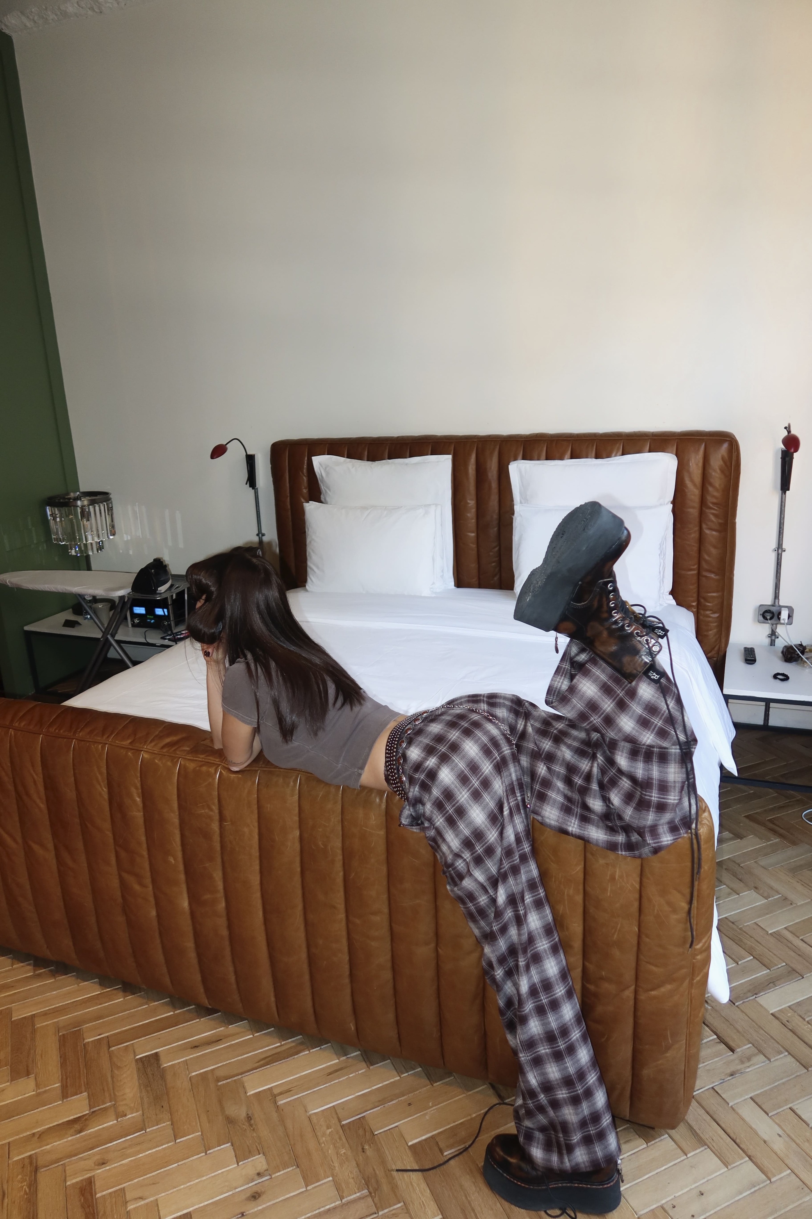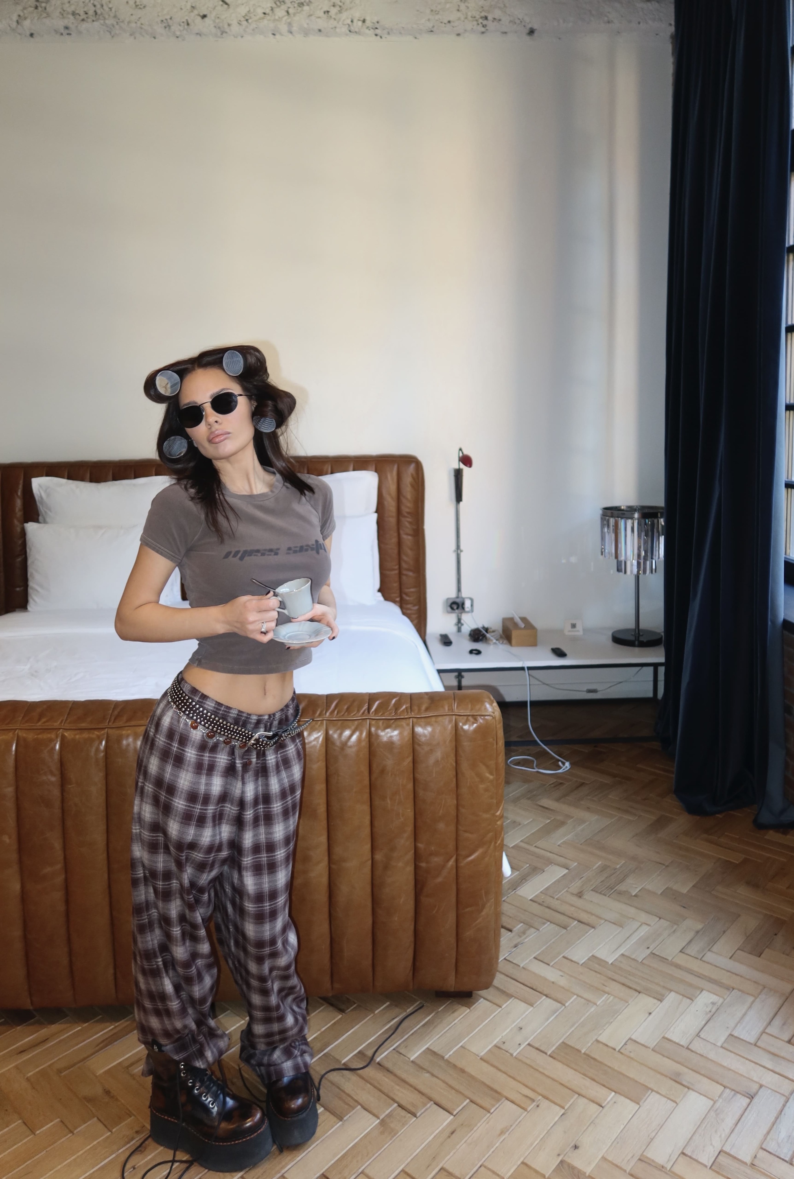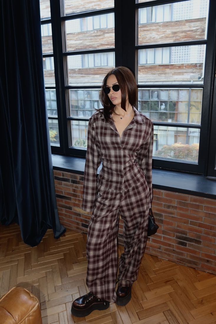 Идея была создать идеальные брюки: мягкие, расслабленные и удобные. Несмотря на объемный силуэт, брюки отлично держат форму, что позволяет носить их с любой обувью — от массивных зимних ботинок до каблуков и домашних тапочек.