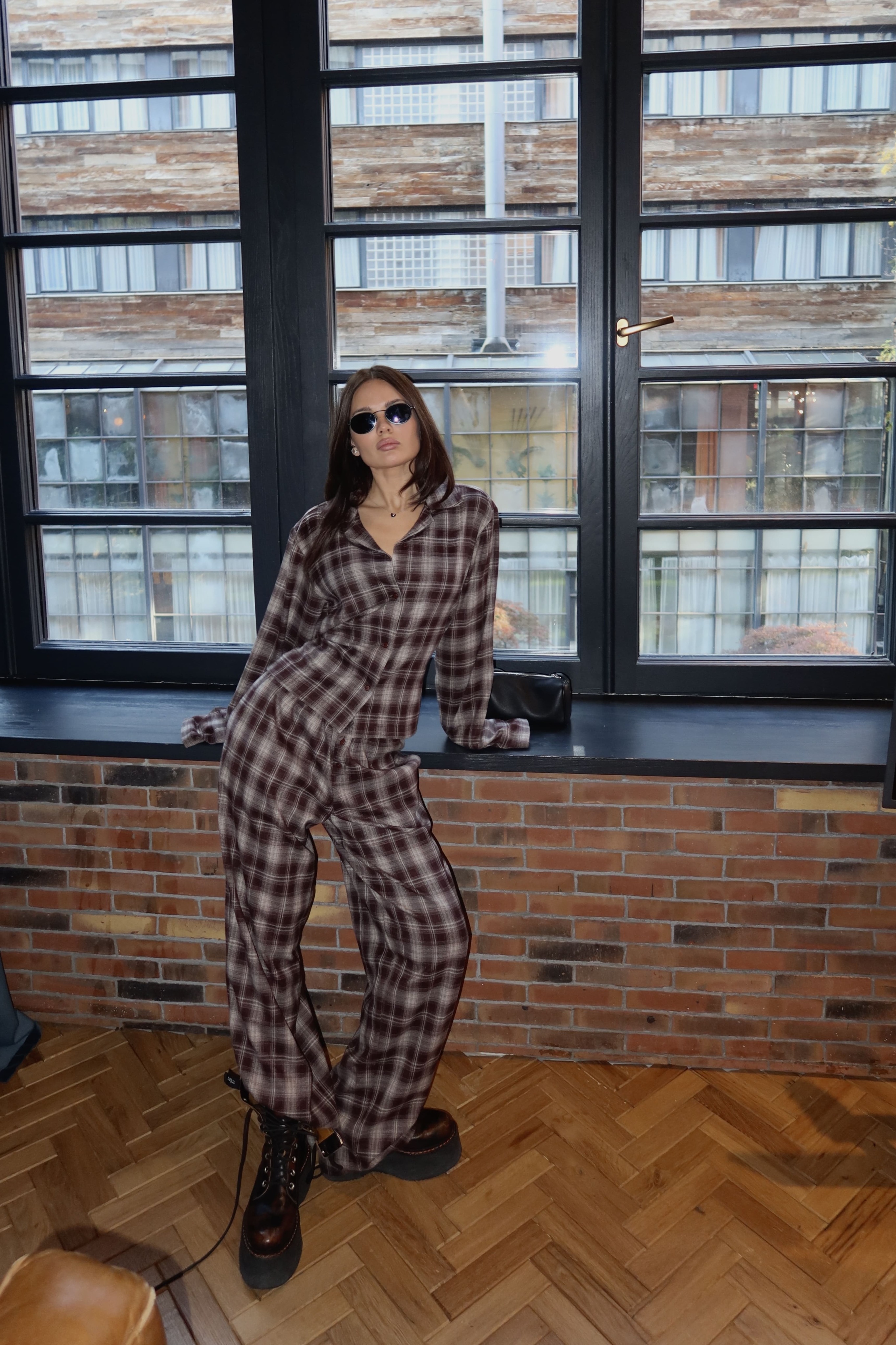 Носите рубашку как самостоятельный элемент гардероба или сочетайте с пижамными брюками или юбками в клетку stamba.