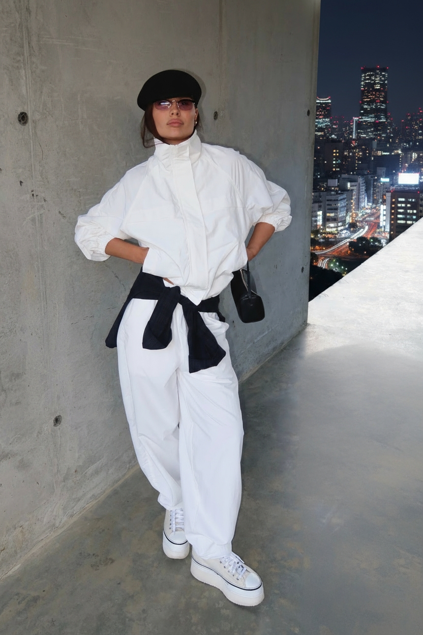 Носите с брюками rain ivory для цельного образа или сочетайте с любыми другими вещами: универсальная ветровка органично смотрится и в casual, и в классике.