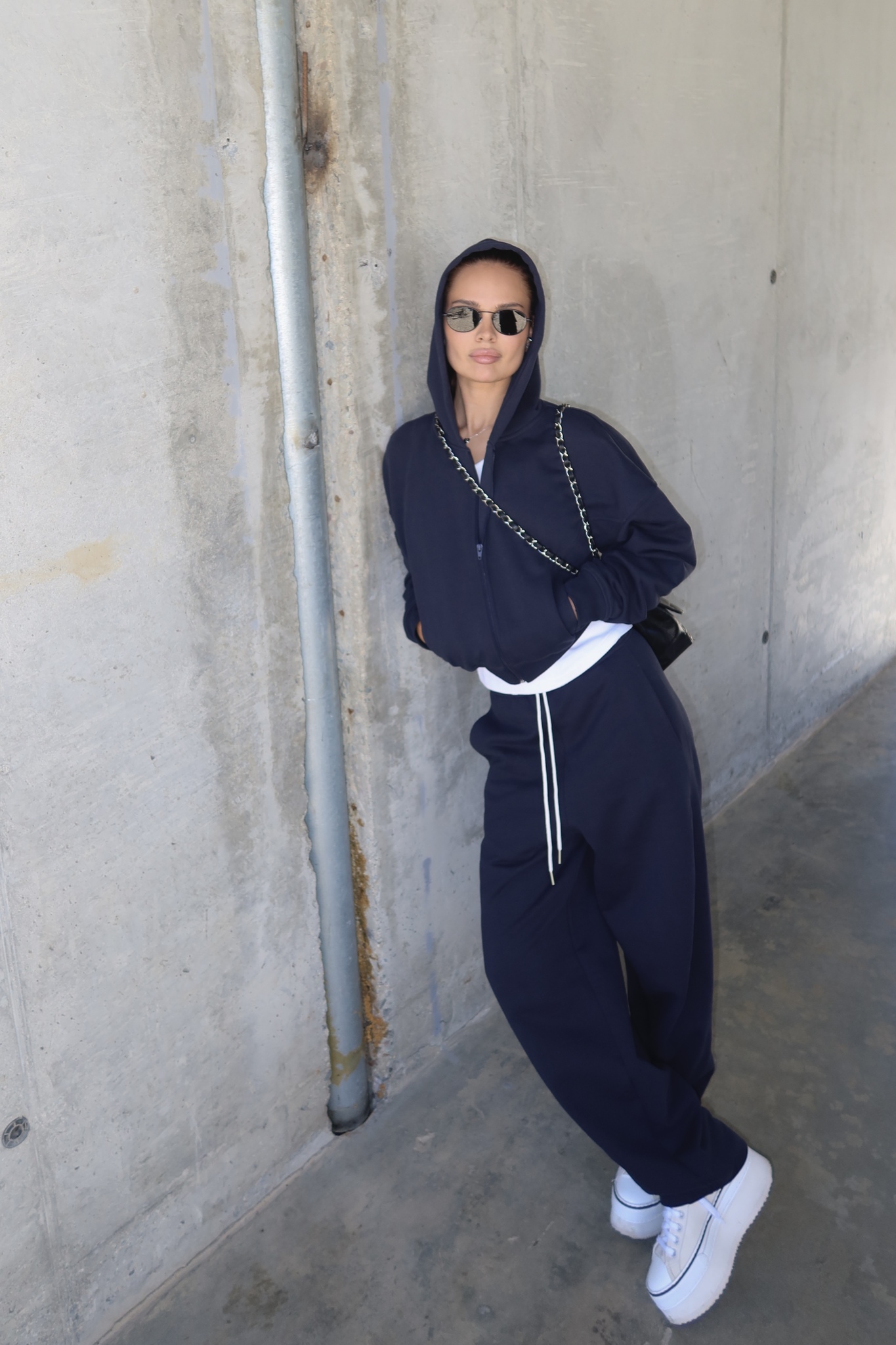 Носите zip-худи с брюками-бананами из новой коллекции или другими любимыми вещами.